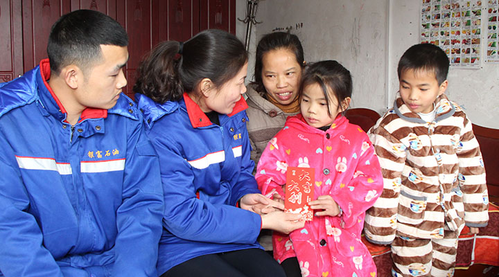 2月11日,銀富石油義工在資陽區(qū)迎風(fēng)橋鎮(zhèn)陳家橋吳化月家送助學(xué)金。新學(xué)期開學(xué)前夕,銀富石油公司董事長郭立新,獲悉迎風(fēng)橋鎮(zhèn)有多個特困家庭面臨交小孩讀書雜費的困難,特安排公司義工走村入戶為陳泗清、匡弘宇等五個小學(xué)生每人送去了1000元,解了燃眉之急。