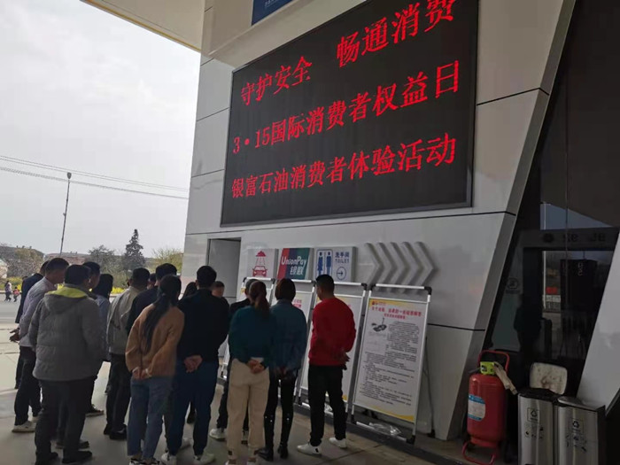 2021年3月12日,益陽銀富石油有限公司組織在旗艦站(梓山站)開展3.15消費者體驗活動,公司副總經理劉建軍向消費者介紹加油站數質量管控流程、客戶投訴處理流程、服務標準化流程、顧客疑慮解答等,就如何把控油品質量,解決顧客疑慮,提高服務客戶水平和滿意度回答了消費者的現場提問,給予了他們滿意的答復。公司調運部(數質管控專家)賀國安部長帶領消費者一起現場觀看了加油站卸油流程,就保證油品質量從源頭、運輸、驗收、儲存、檢測等每個環節都做了詳細講解。加油站計量員帶領大家了解加油工作原理和稅控加油機、計量器鉛封等,介紹了加油工藝流程和監管部門對行業的監管措施。